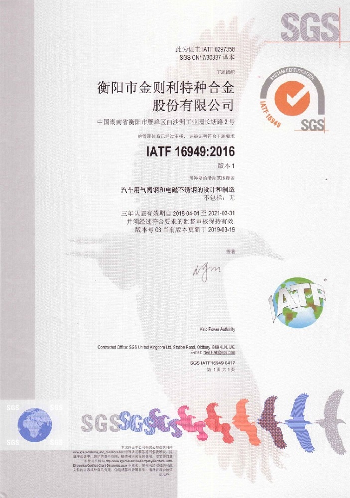 衡阳市金则利特种合金股份有限公司成立于一九九九年十二月,注册资本人民币两千两百万元。注册地址:衡阳市雁峰区白沙洲工业园长塘路2号。公司主营耐蚀软磁合金,为湖南省高新技术企业。公司自成立以来,即致力于耐蚀软磁合金的研发。 研制出的JL-31(00Cr13si2Pb)、JL-31B(00Cr13si2)、JL-31BS(00Cr13Si2S)、JL-37B(0Cr17Si2)、JL-37(0Cr17···